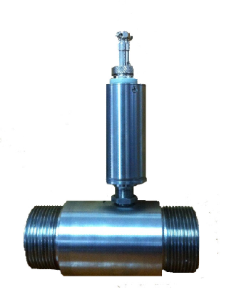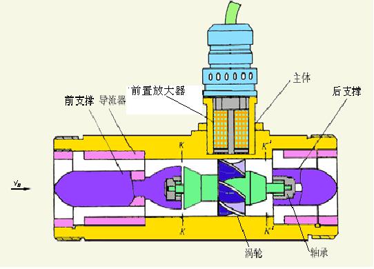 渦輪流量計是速度式流量計中的主要種類,當被測流體流過渦輪流量計傳感器時,在流體的作用下,葉輪受力旋轉,其轉速與管道平均流速成正比,同時,葉片周期性地切割電磁鐵產生的磁力線,改變線圈的磁通量,根據電磁感應原理,在線圈內將感應出脈動的電勢信號,即電脈沖信號,此電脈動信號的頻率與被測流體的流量成正比。